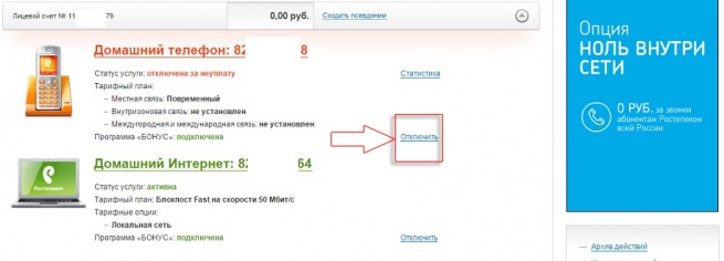 — Как отключить интернет Ростелеком.